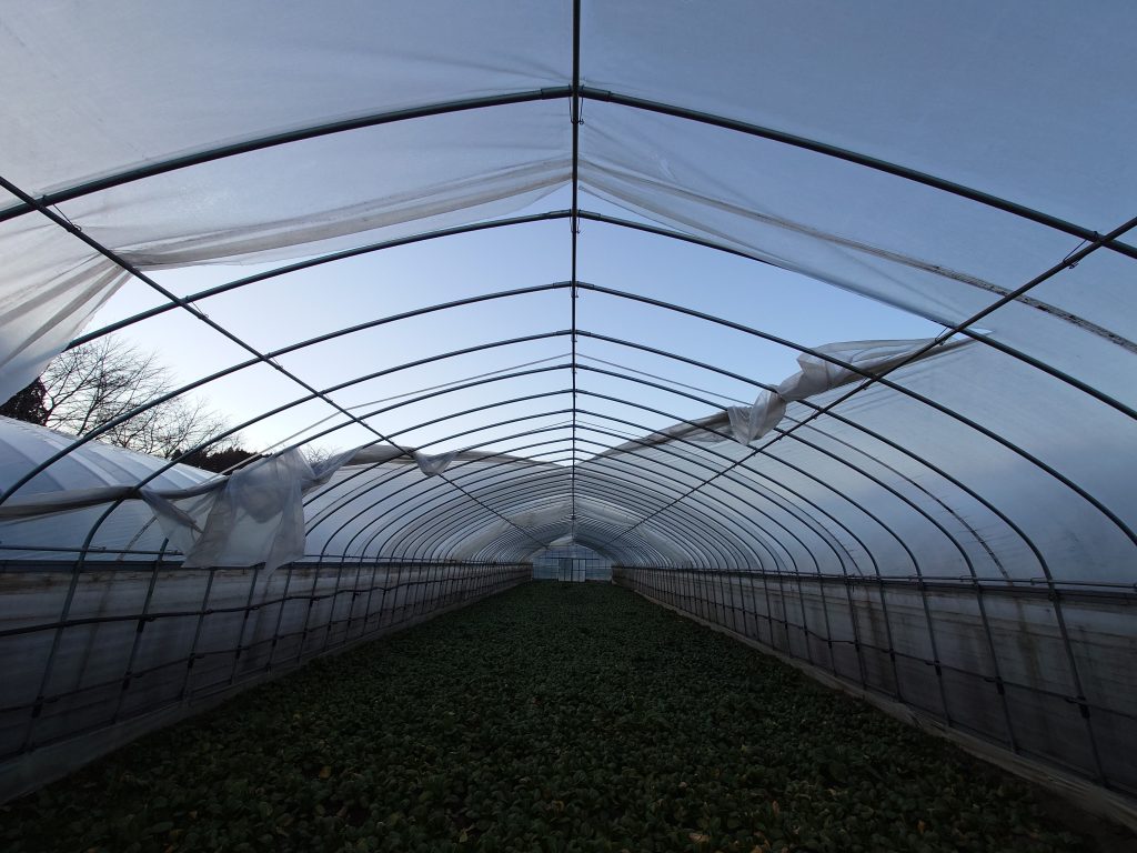 以前にあった突風や大雪で多くのハウスの天井ビニールが破れました。